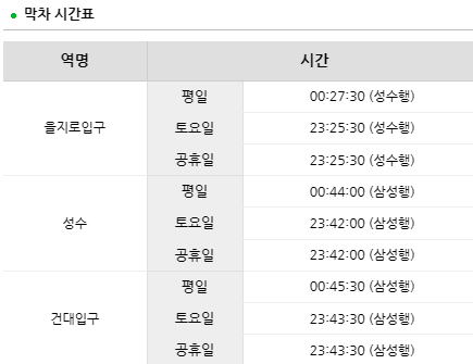 특히나 아침일찍 첫차를 타야하거나 친구들과 놀고 난뒤에 막차를 지하철 2호선을 이용해서 가야 할 경우는 해당 역의 시간표는 꼭 알아두는것이 좋습니다.