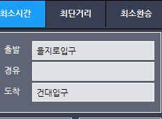 출발역/경유/도착역을 원하시는 대로 입력을 하시면 조회를 해서 보여주게 됩니다.