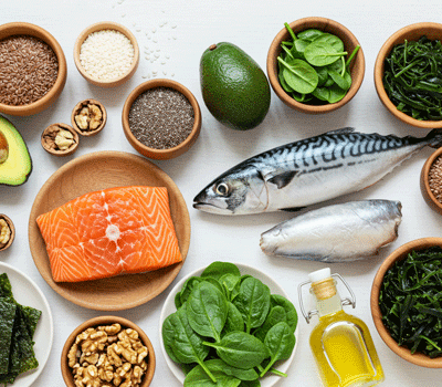 오메가3는 연어, 고등어, 정어리 같은 생선류와 해조류, 아마씨유, 견과류 등에 풍부하게 들어 있으며, 최근에는 식물성 오메가3 제품도 다양하게 출시되고 있어 비건도 쉽게 섭취할 수 있습니다.