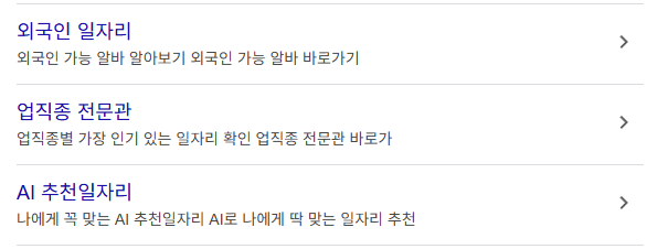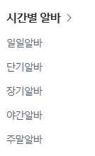 업직종별로 선택 할 수 있으며 풀타임으로 일을 하지 못할 경우 파트타임에 대한 카테고리도 별도로 되어 있어서 세밀하게 조회를 하실 수 있습니다.