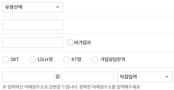 문의 유형이나 가입회선 통신망 답변받을 이메일등을 작성하시면 됩니다.