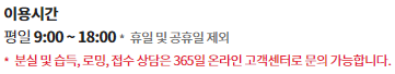 고객센터 영업시간은 오전 9시부터 오후 6시까지로 평일만 운영이 되고 있습니다.