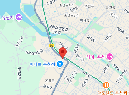 | 춘천 | 033-252-3800 | [24435]강원 춘천시 영서로 2303 | 춘천 / 경기 가평(수) / 강원 화천,양구(목) / 강원 인제,홍천(금) |