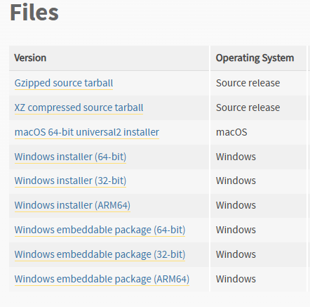 python 홈페이지를 방문해서 embed가 되어 있는 파일을 받는다.