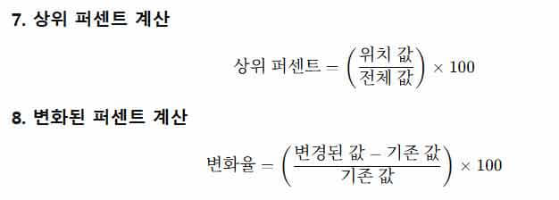 예: "(변경된 값 - 기존 값) ÷ 기존 값 × 100"